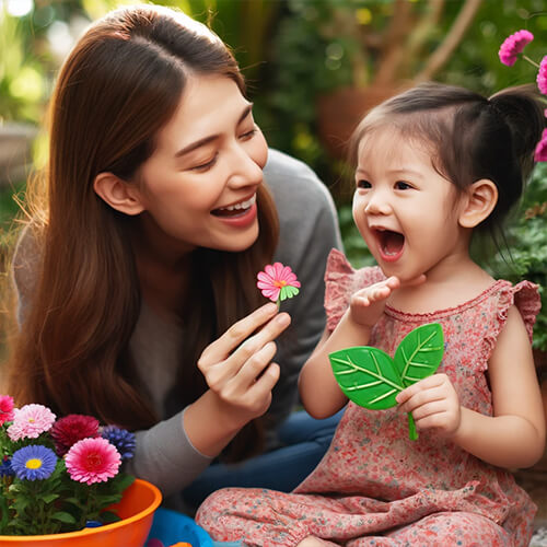 일상 생활에서 아이와 지속적으로 대화를 나누는 것이 중요합니다. 아이의 말이나 행동에 대해 적극적으로 반응하고, 간단한 질문을 던져 아이가 답변할 기회를 많이 만들어 주세요. 이는 아이가 언어를 사용하는 데 자신감을 갖도록 돕습니다.
