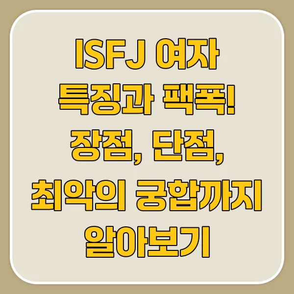 이번 포스팅에서는 ISFJ 여자 특징을 팩폭하고, 장점과 단점, 그리고 최악의 궁합까지 꼼꼼하게 살펴볼 거예요.